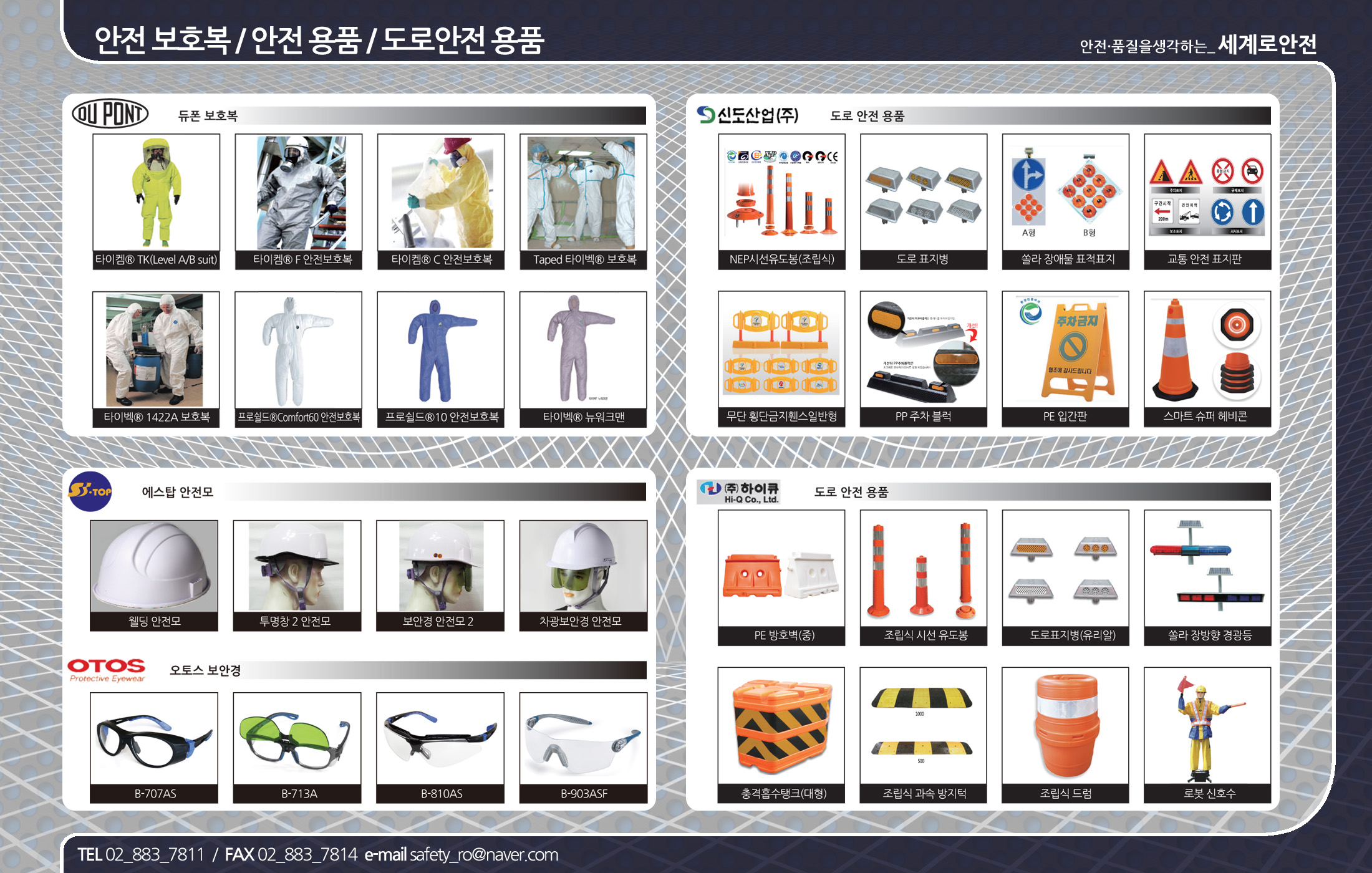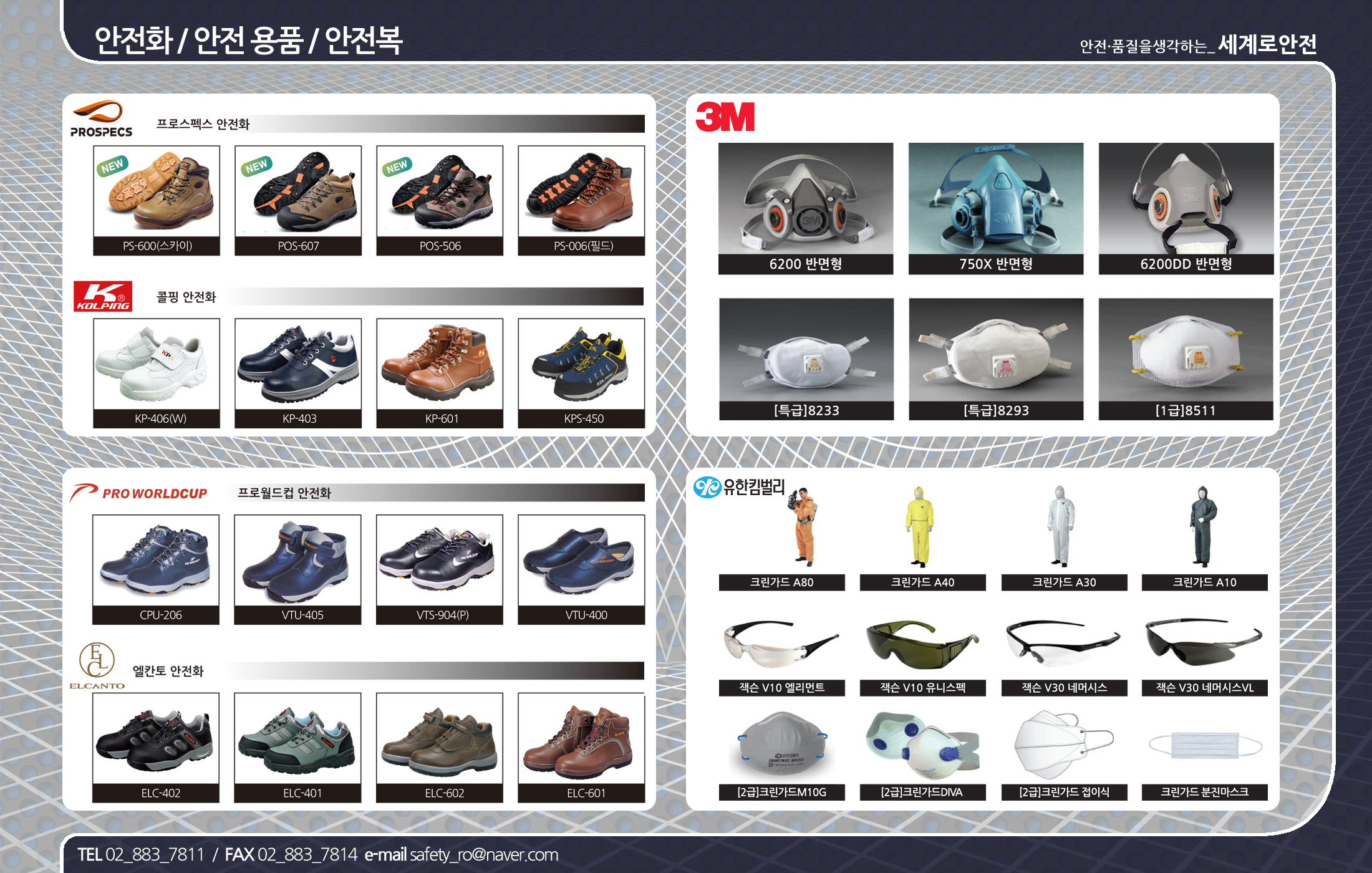 * 3M안전용품, 유한킴벌리 산업용와이퍼, 듀폰보호복, 하이큐, 신도산업, 오토스보안경,