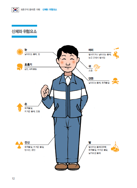 근로자 작업시 신체 각 부위별 위험요소를 설명함