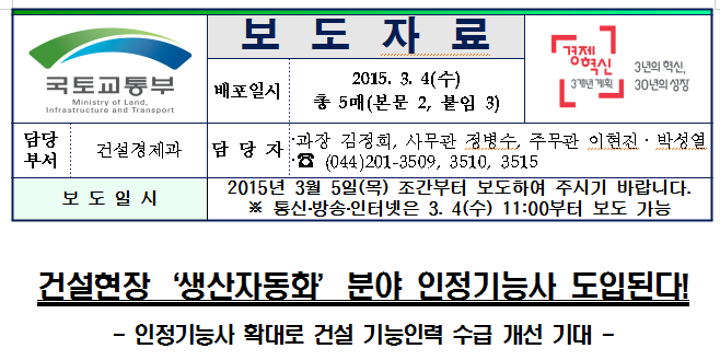 150305(조간) 건설현장_생산자동화_분야 인정기능사 도입된다!(건설경제과).hwp