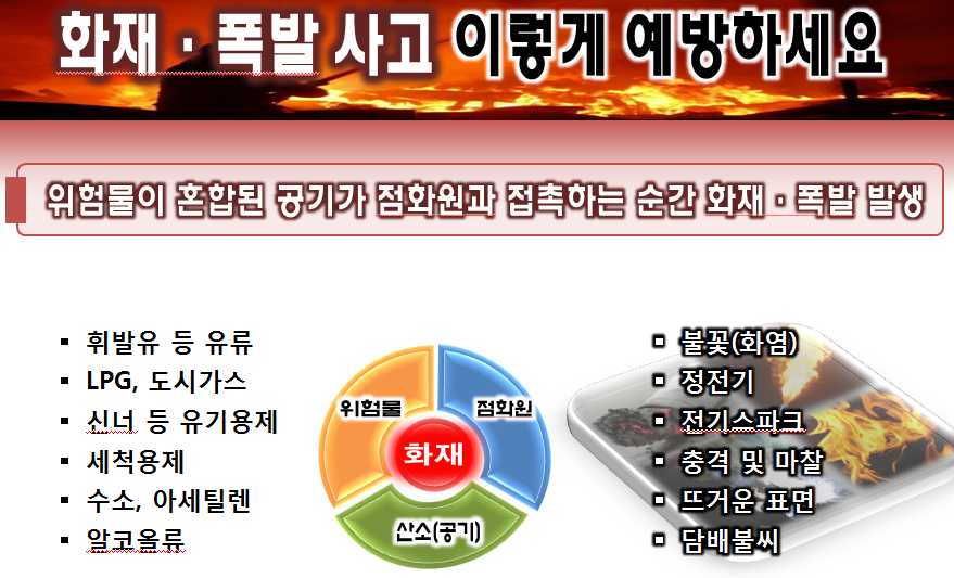 발생방지 조치 등 화재 및 폭발사고 예방을 위한 안전관리에 만전을 기하여 주시기 바랍니다.