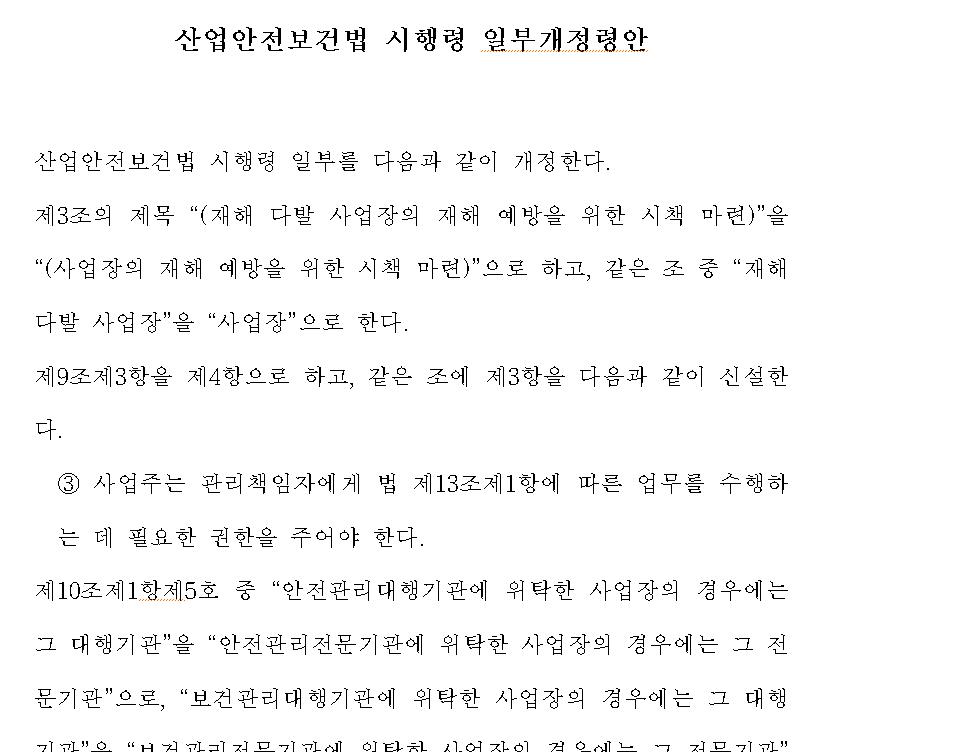 산업안전보건법 시행령 일부개정령안