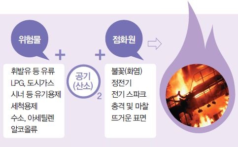 이처럼 화재사고의 원인은 위험물에 대한 관리 또는 점화원에 대한 관리가 소홀하여 일어나기 때문에 위험물과 점화원을 제거하는 것이 화재사고 예방에 가장 중요한 요소이다.