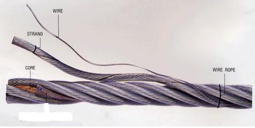와이어 로프의 구성은 통상 중심(CORE)과 이를 둘러싼 수개의 스트랜드(STRAND)로 크게 구분하여 설명할 수 있습니다.