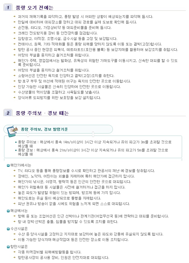 과거의 재해기록을 파악하고, 풍랑 발생 시 어떠한 상황이 예상되는지를 파악해 둡시다.