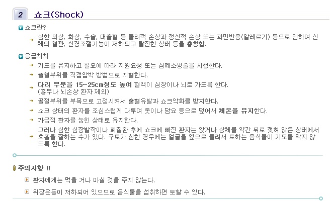 * 쇼크응급조치요령, 쇼크응급처치요령