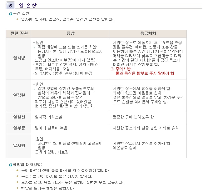 * 열손상응급조치요령, 열사병응급처치요령, 일사병응급조치요령, 열사병응급조치요령, 일사병응급처치요령