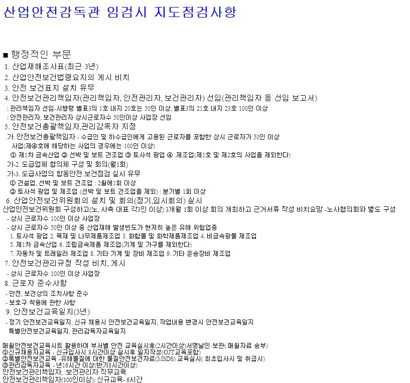 산업안전감독관 임검시 지도점검사항