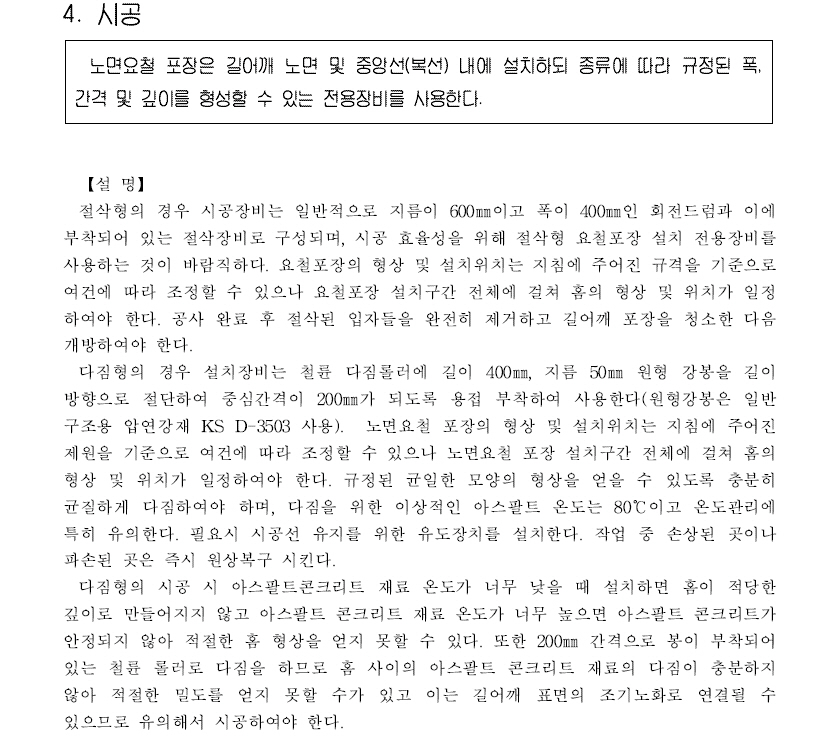사용하는 것이 바람직하다. 요철포장의 형상 및 설치위치는 지침에 주어진 규격을 기준으로