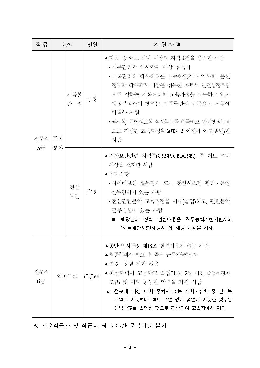 3. 채용직급/인원/자격요건/일정 등: 붙임 공고문 참조