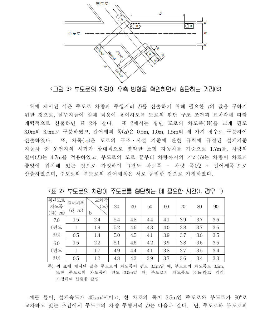 단일로의 경우에는 산지부의 곡선부나 곡선반경이 작은 곳 등에서 도로의 주행속도에 따른