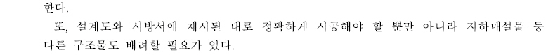 또, 설계도와 시방서에 제시된 대로 정확하게 시공해야 할 뿐만 아니라 지하매설물 등