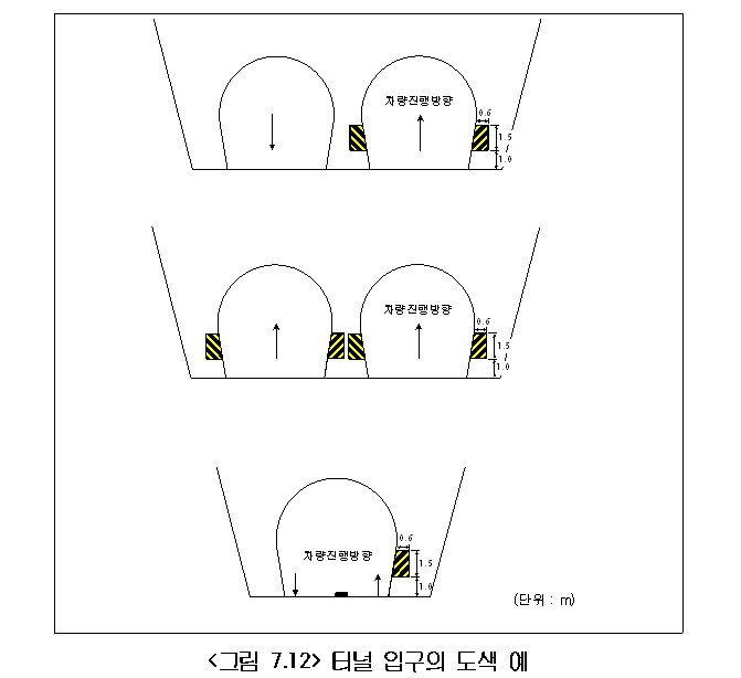 구조물 도색은 도로 상에 구조물이 위치해 있다는 정보를 구조물 외벽에 도색을 통해 전달할 목적으로 설치하는 시설이다. 터널에 진입하는 차량이 터널 외벽을 인지하고 충돌을 방지하기 위해 터널 입구에 설치한다.
