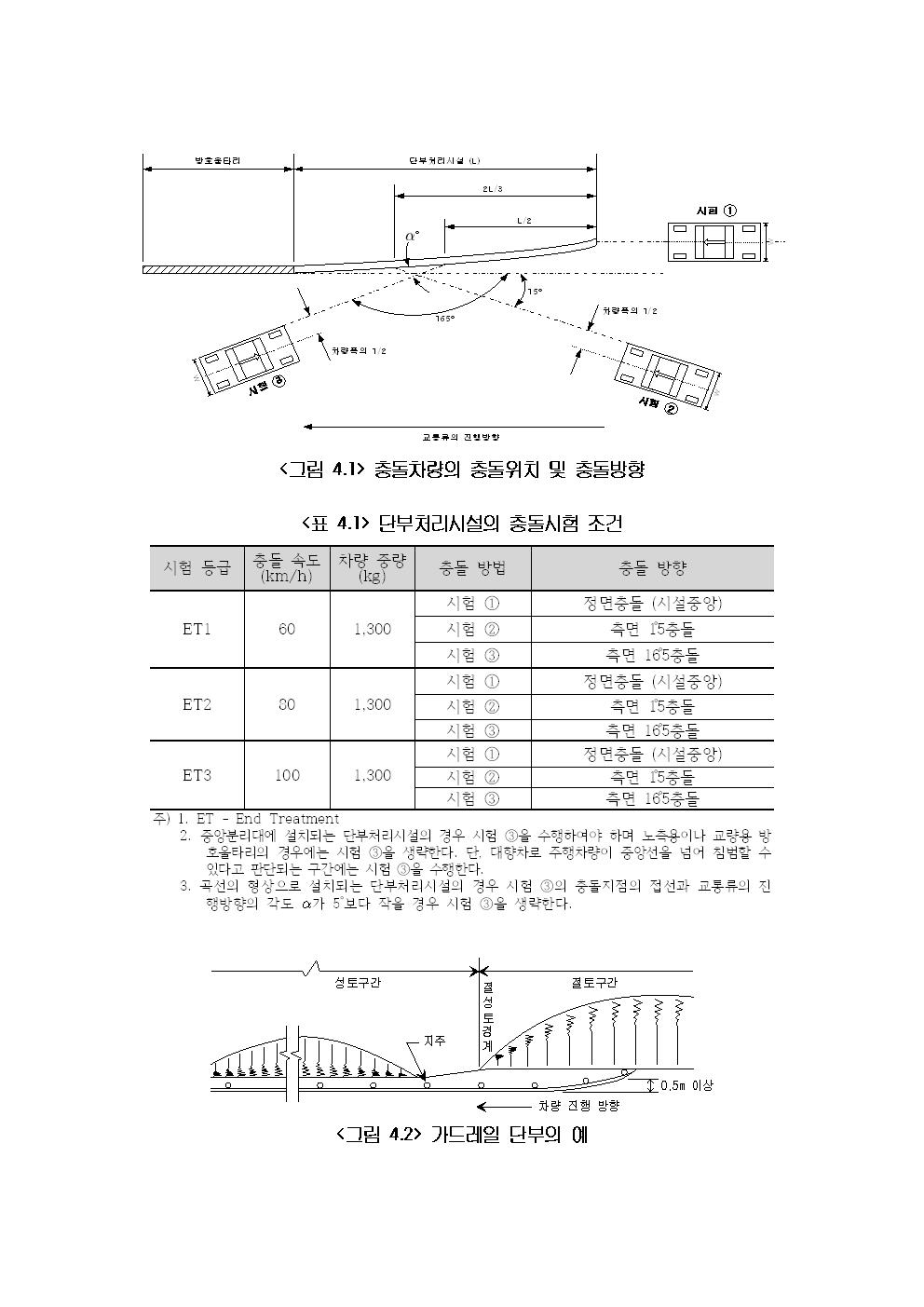 단부처리시설은 주행로를 벗어난 차량의 충격에너지를 흡수하여 차량을 안전하게 멈추게 하거나 차량의 방향을 복귀시켜 주는 기능을 갖추어야 한다.