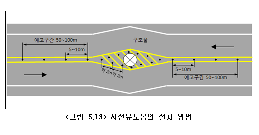 [시선유도시설 설치방법] 교각 및 교대앞의 사례