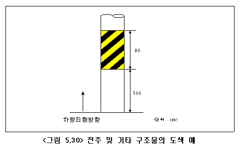 도로의 우측에 인접해 있는 전주 및 기타 구조물은 차량에 위험 요소로 작용하므로 충돌을 방지하기 위한 적절한 안전 대책을 실시한다.