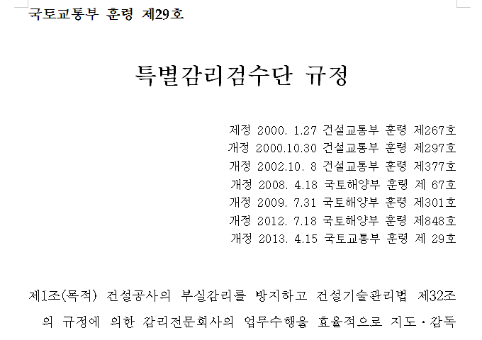 [국토교통부훈령 제29호] 특별감리검수단규정-개정 2013. 4.15