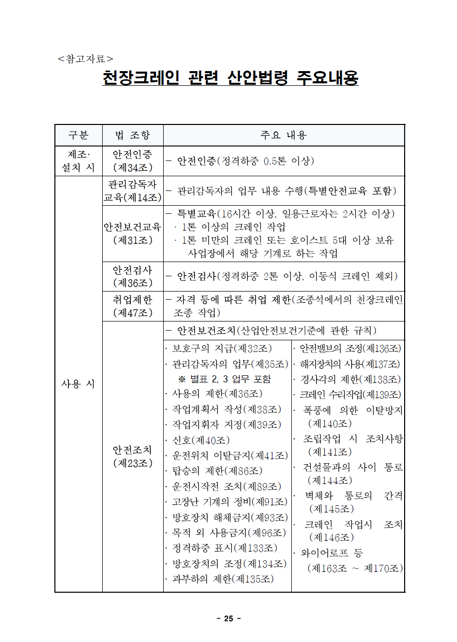 천장크레인과 관련된 산안법령 주요내용