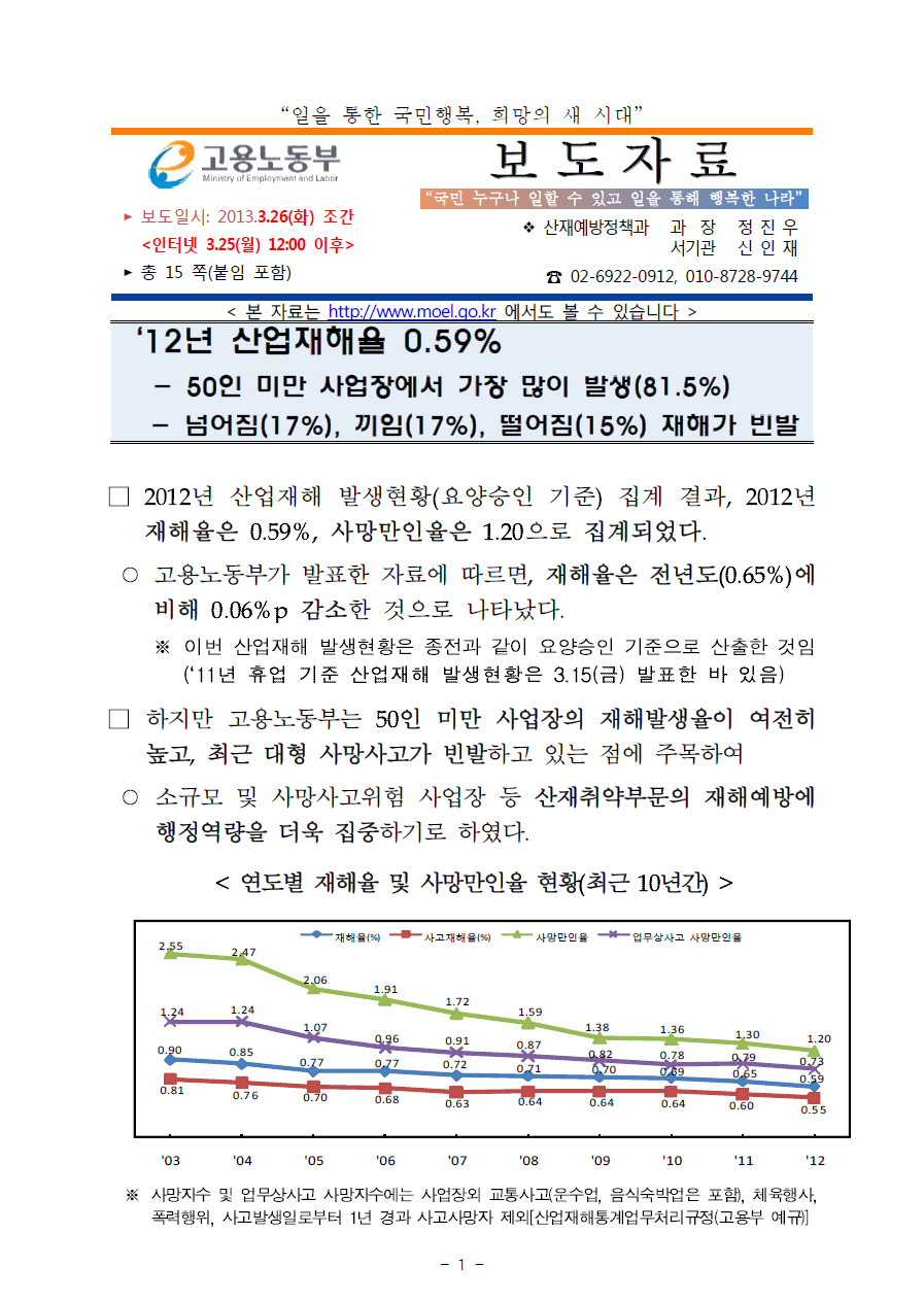 [속보] 2012 산업재해발생현황(2013.3)