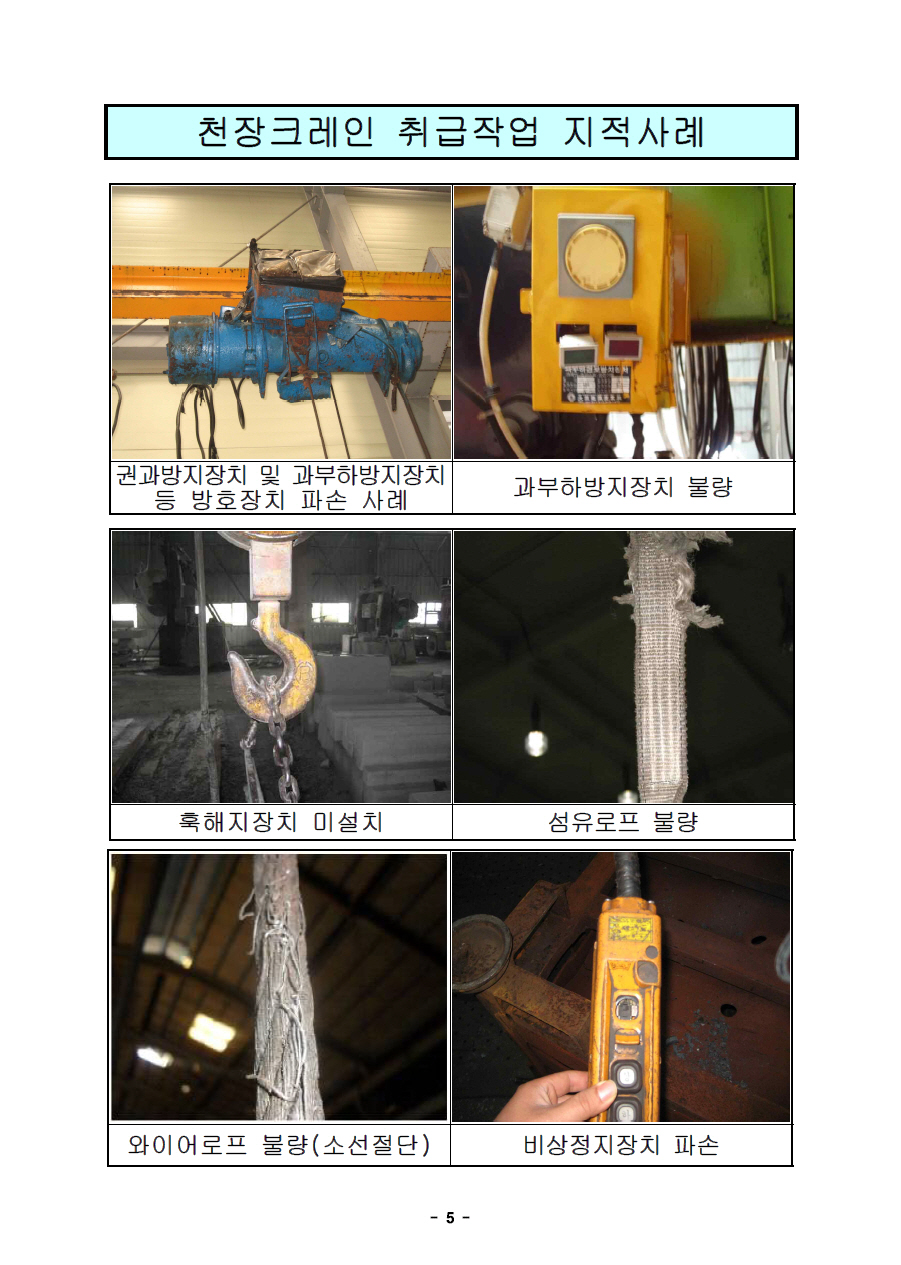 천정크레인(천장크레인) 취급작업 지적사례(사진)