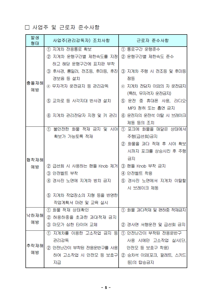 지게차운전작업 위험포인트 및 안전대책