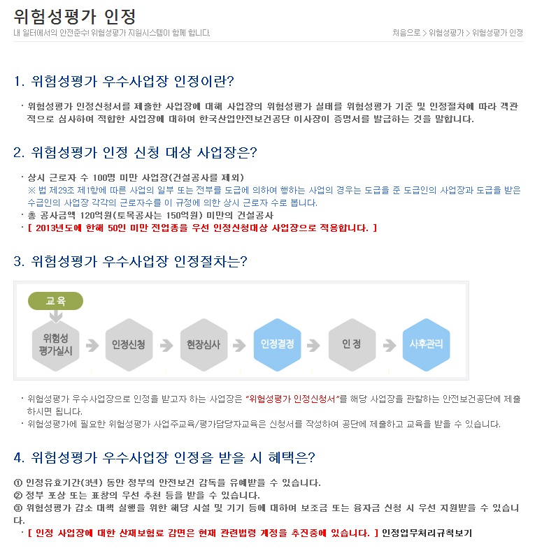 4. 위험성평가 우수사업장 인정을 받을시 혜택은 ?
