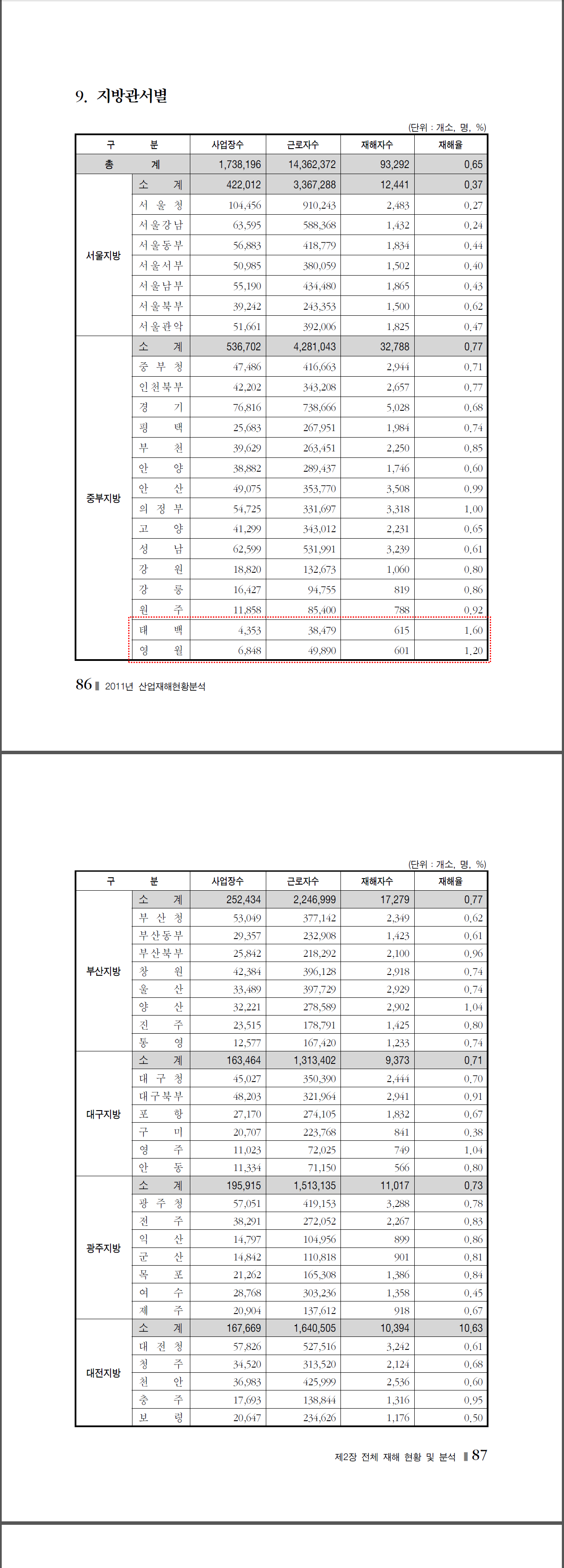 2011년 재해현황및분석_지방관서별