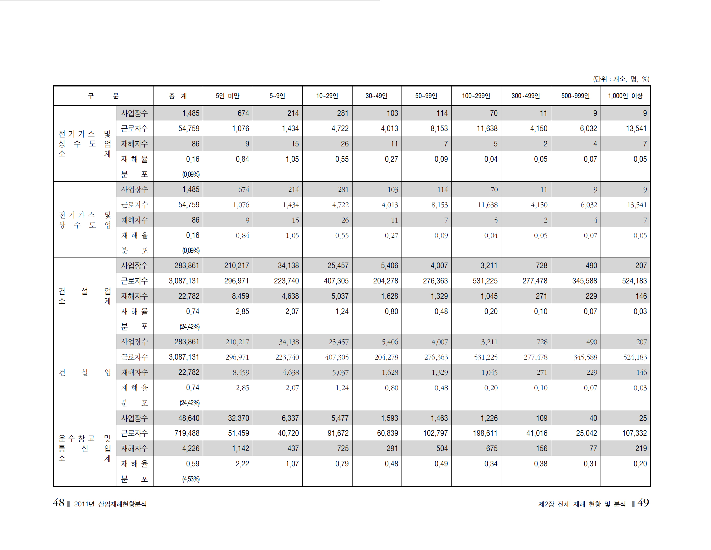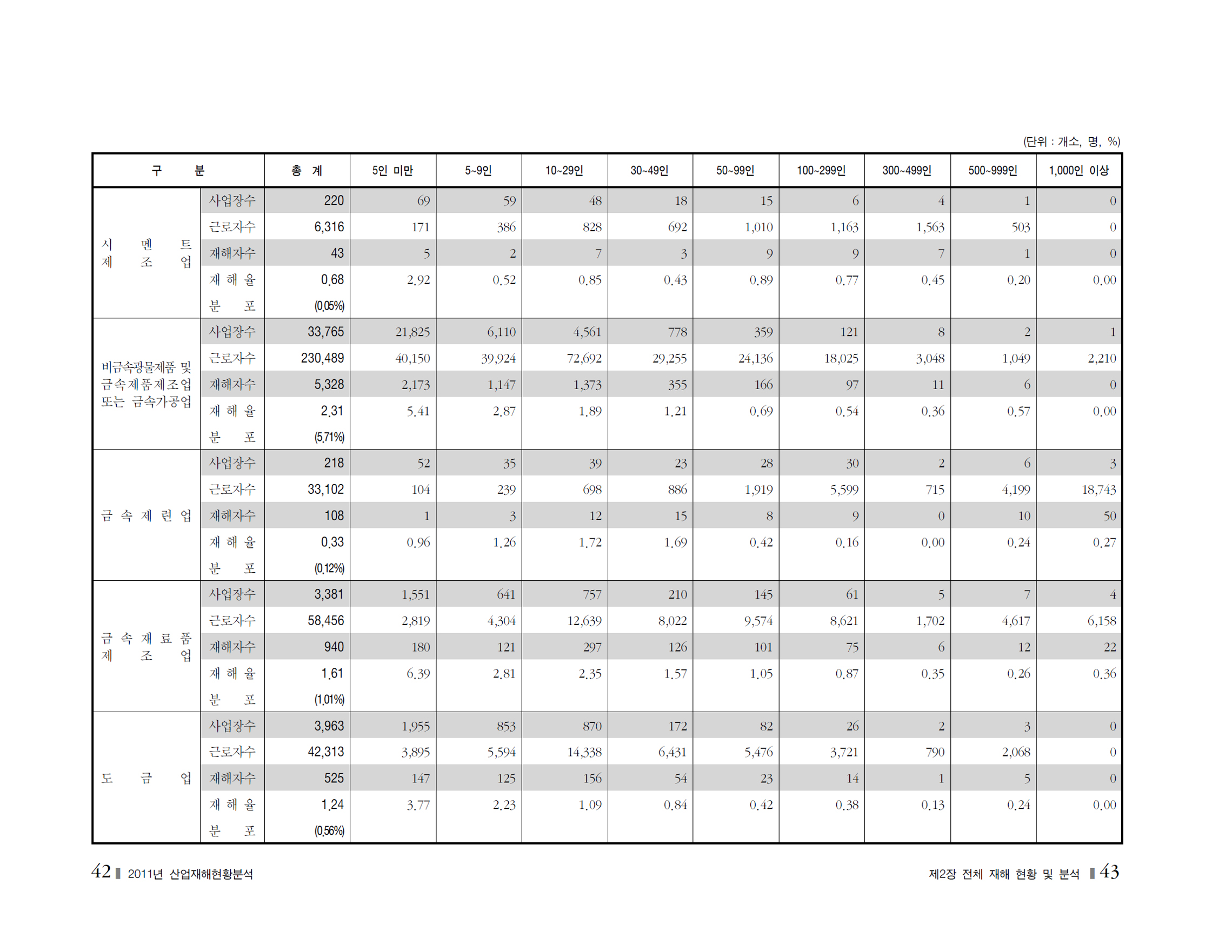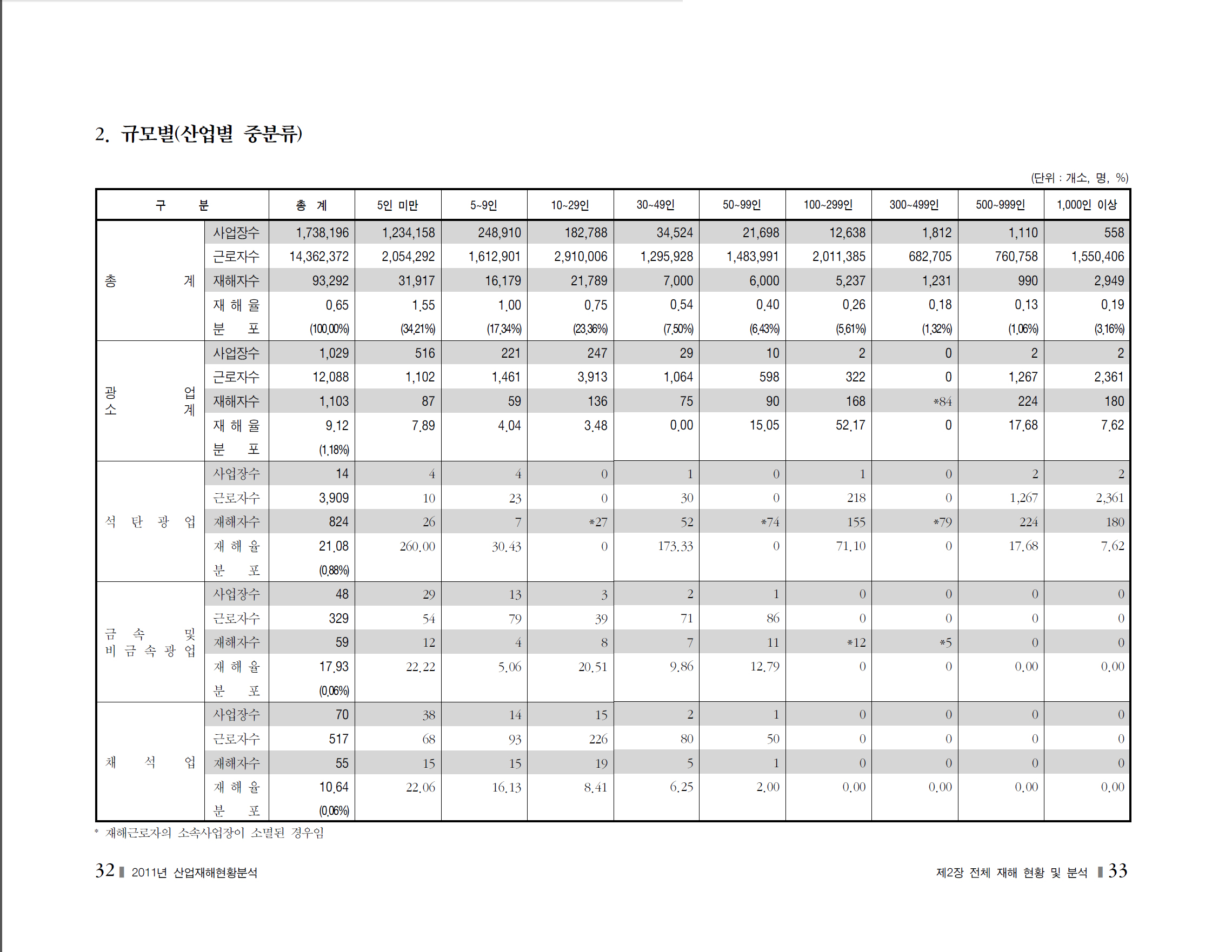 2011년 재해현황및분석_사업장규모별
