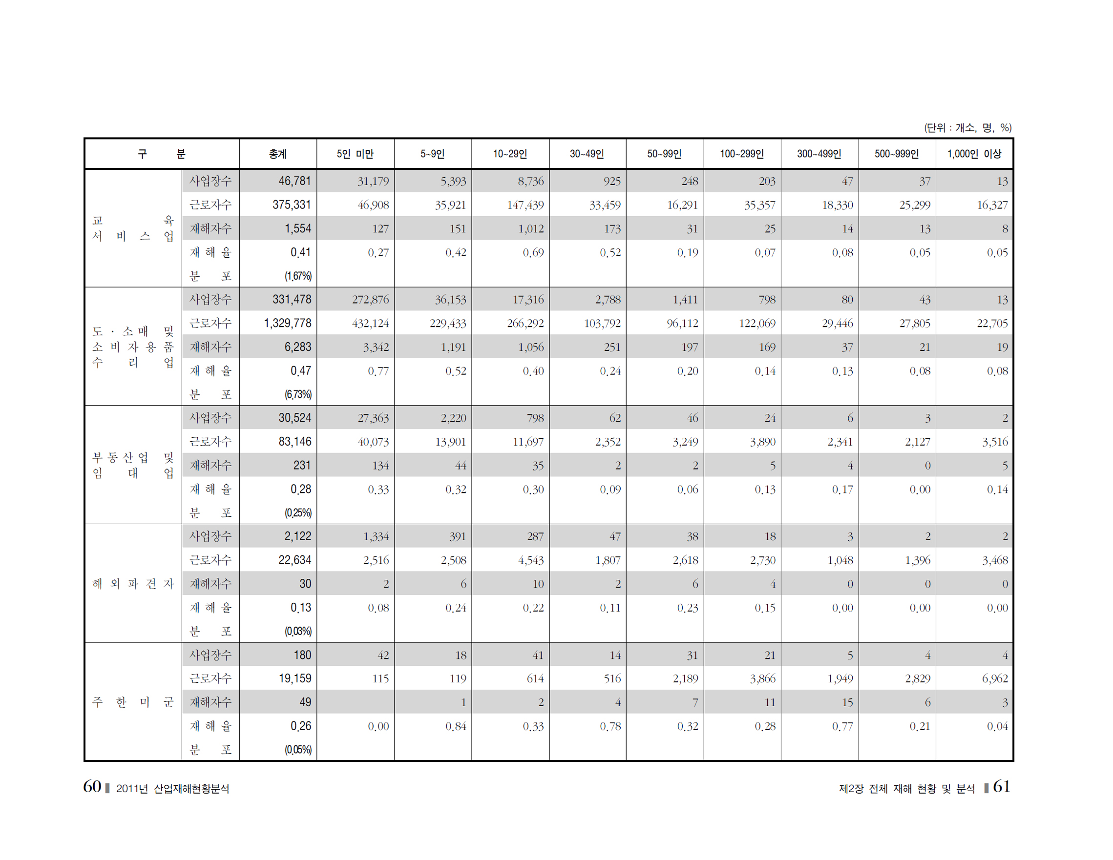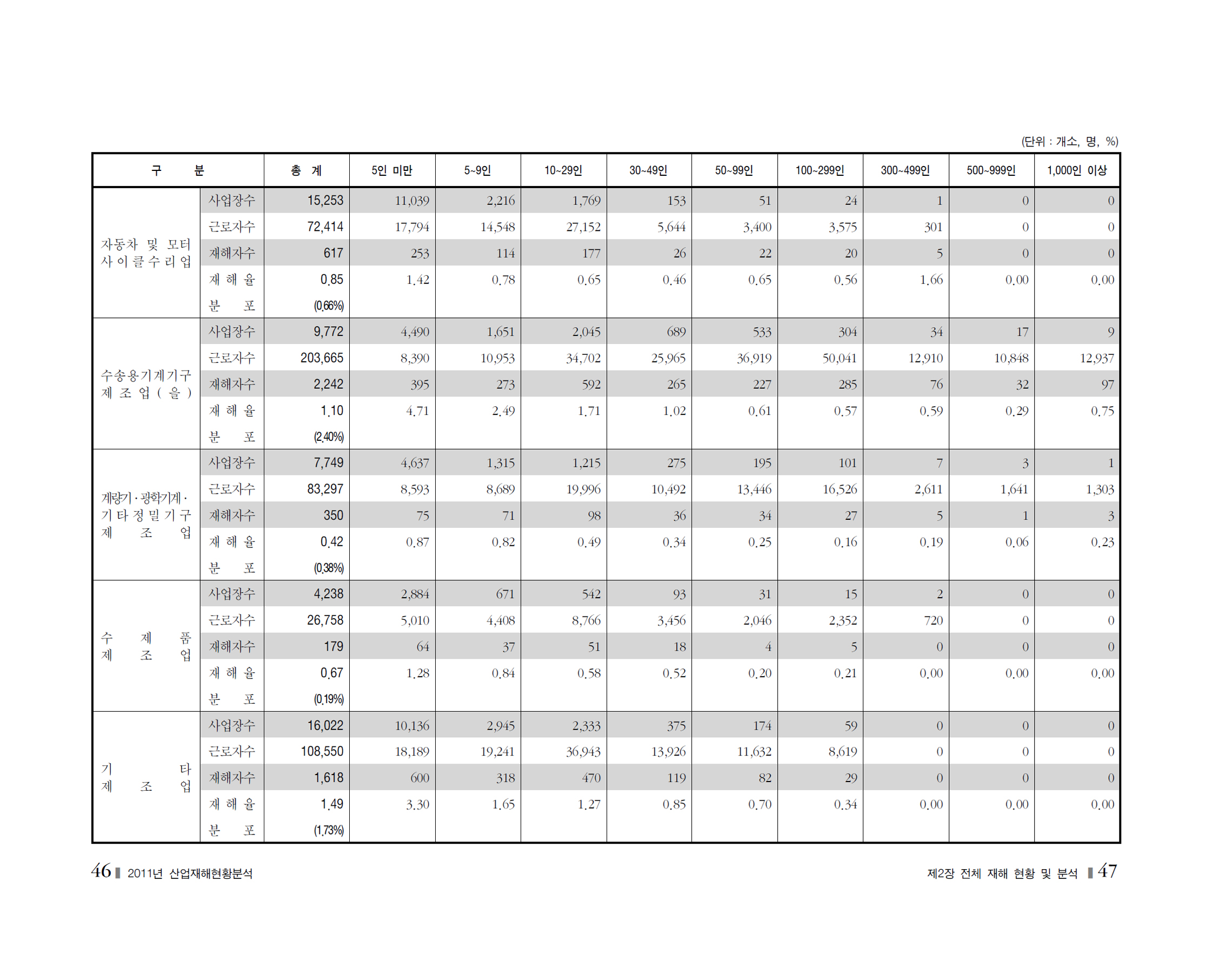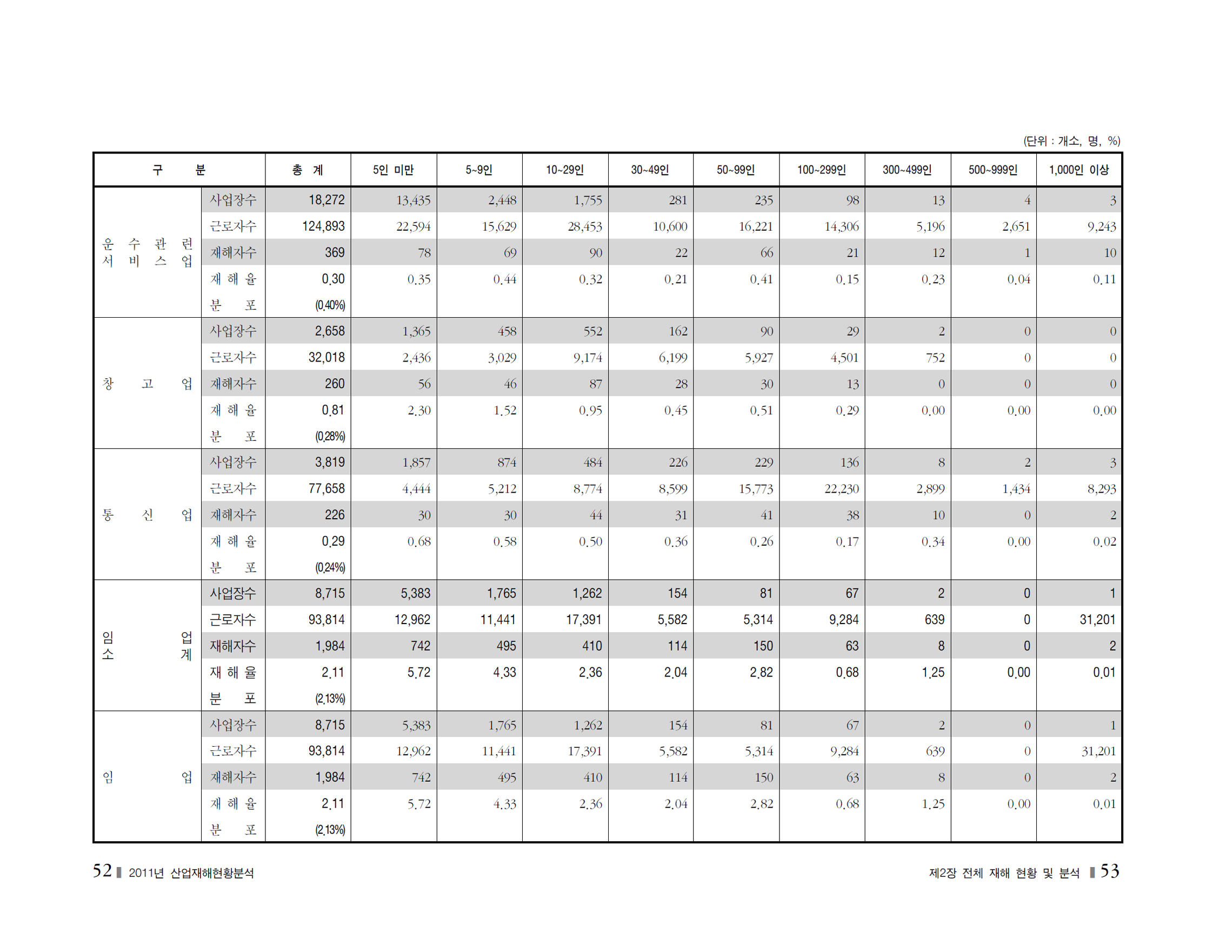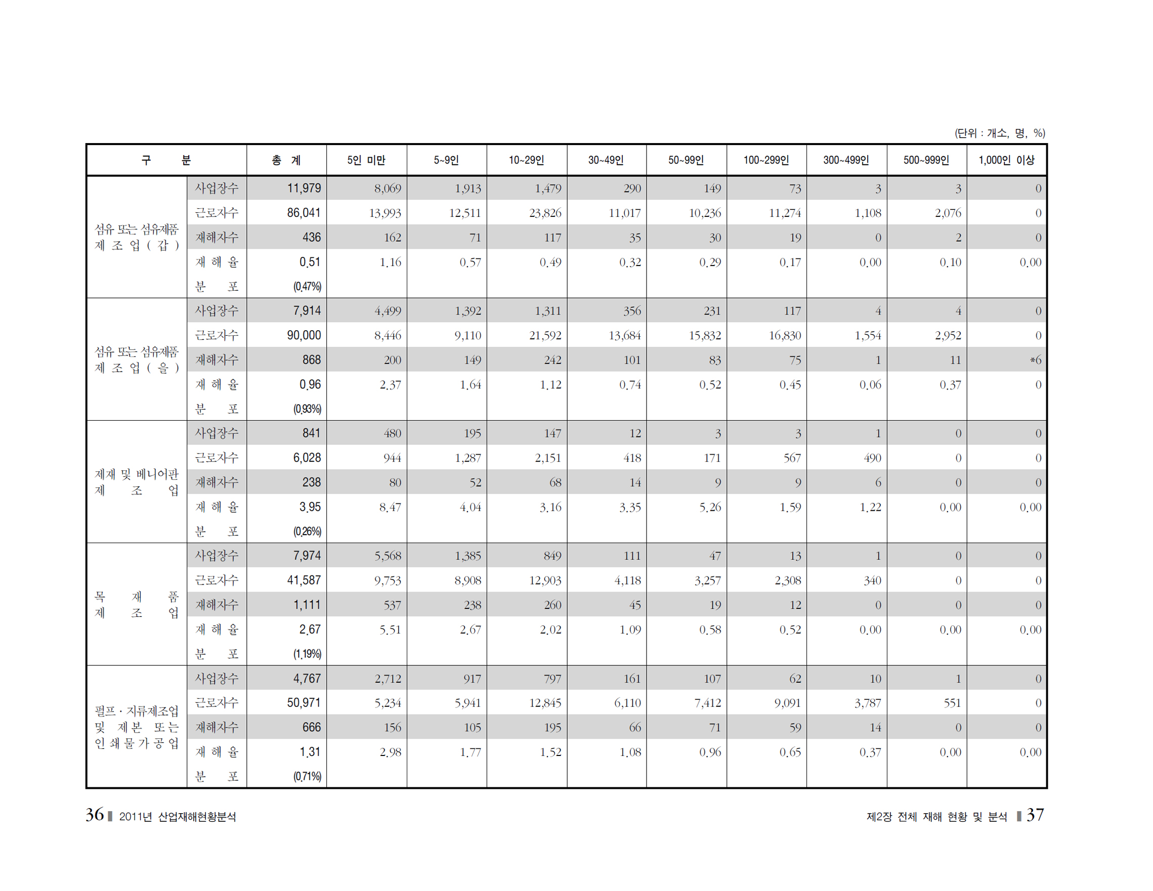 2011년 재해현황및분석_사업장규모별