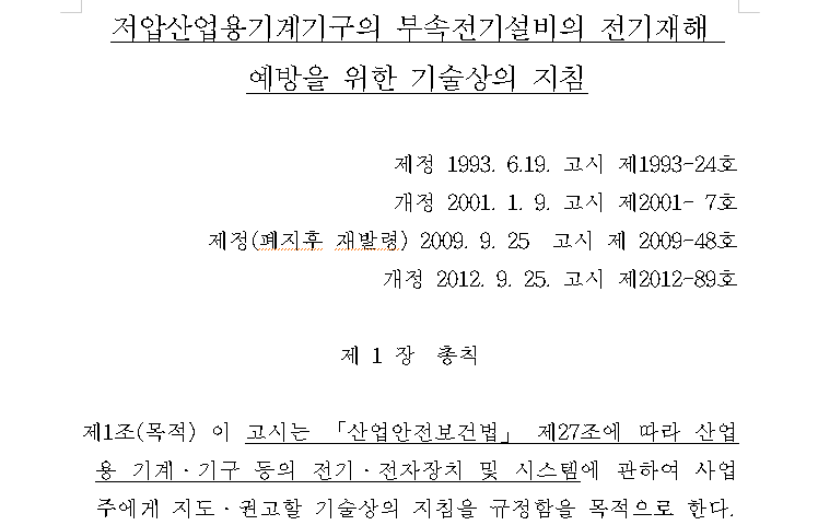 [고용노동부고시 제2012-89호] 저압산업용기계기구의 부속전기설비의 전기재해예방을위한 기술상의지침