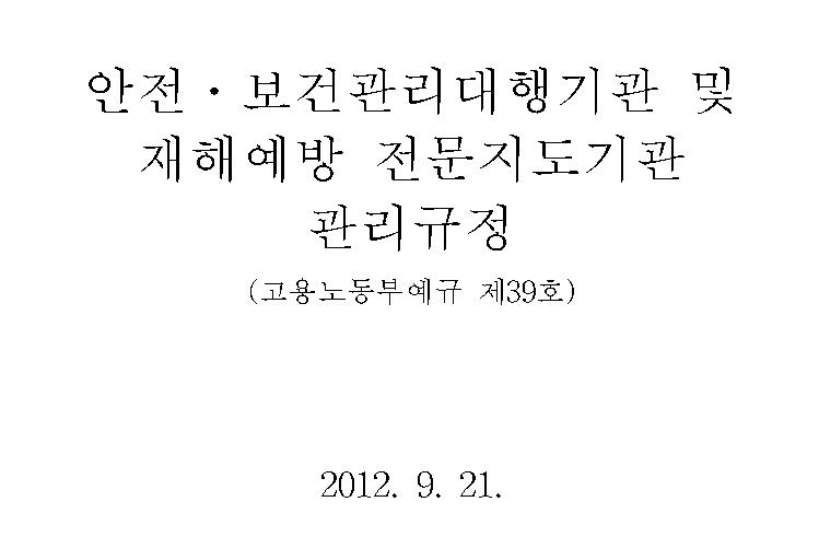 [고용노동부예규 제39호] 안전․보건관리대행기관 및 재해예방 전문지도기관 관리규정-2012.9.21 개정