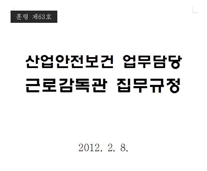 [고용노동부훈령 제63호] 산업안전보건 업무담당 근로감독관 집무규정-2012.2.8 개정