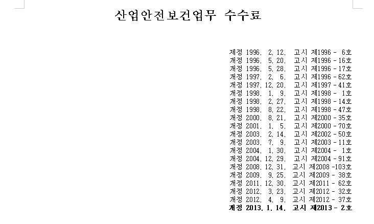 [고용노동부고시 제2013- 2호] 산업안전보건업무수수료 2013.1.14 개정