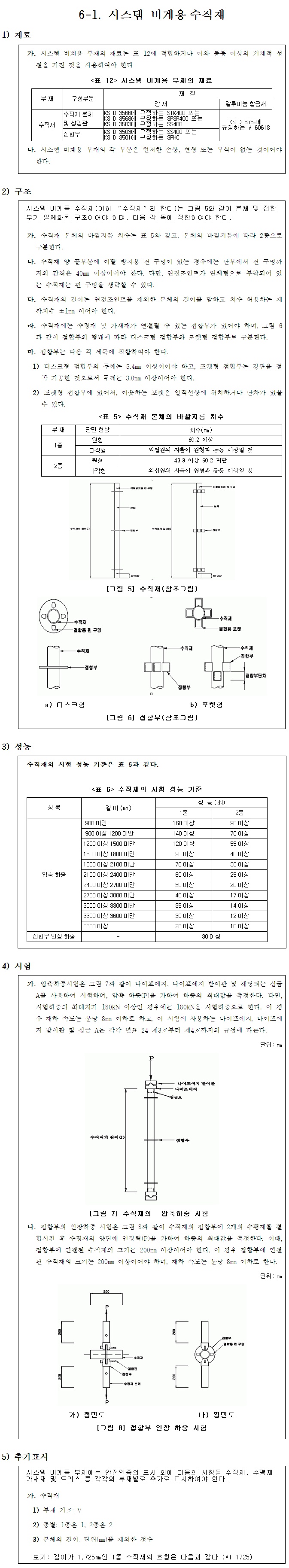 수직재 본체의 바깥지름 치수는 표 5와 같고, 본체의 바깥지름에 따라 2종으로 구분한다