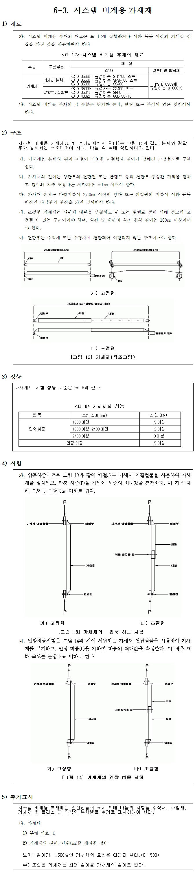 시스템비계용가새재 재료/구조/성능/시험기준