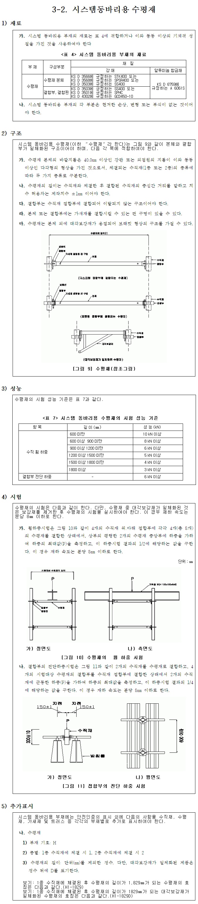 시스템동바리용수평재 재료/구조/성능/시험기준