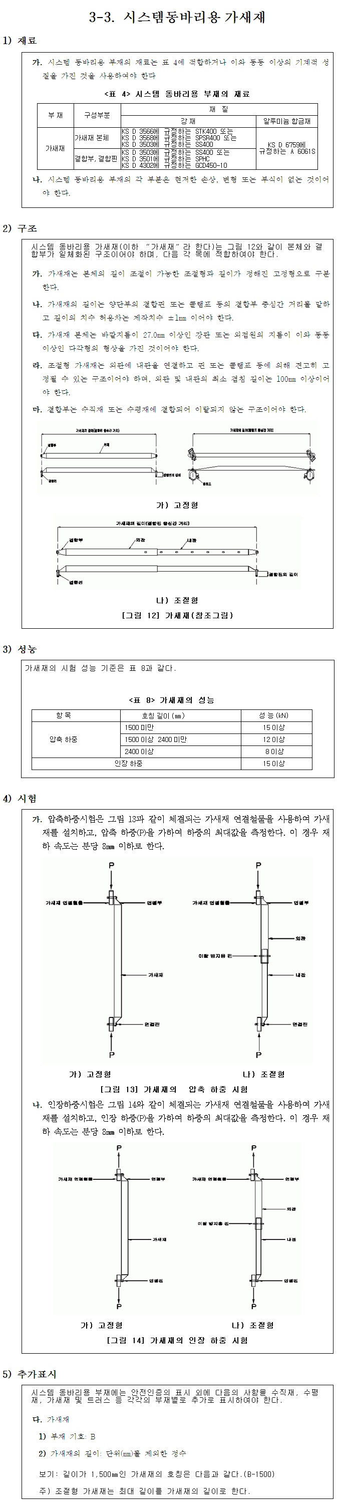 시스템동바리용가새재 재료/구조/성능/시험기준