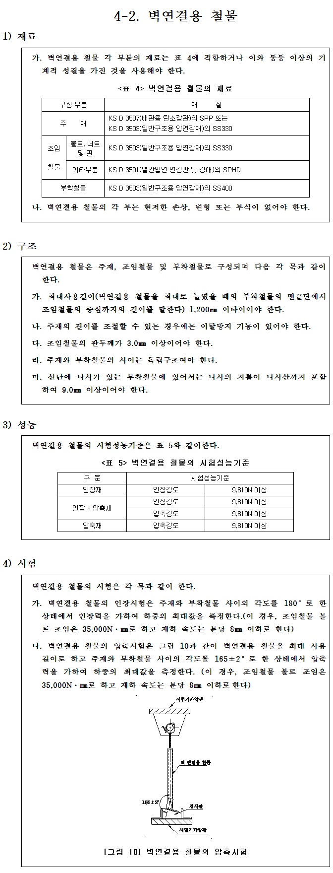 강관비계용부재 벽연결용철물 재료/구조/성능/시험기준