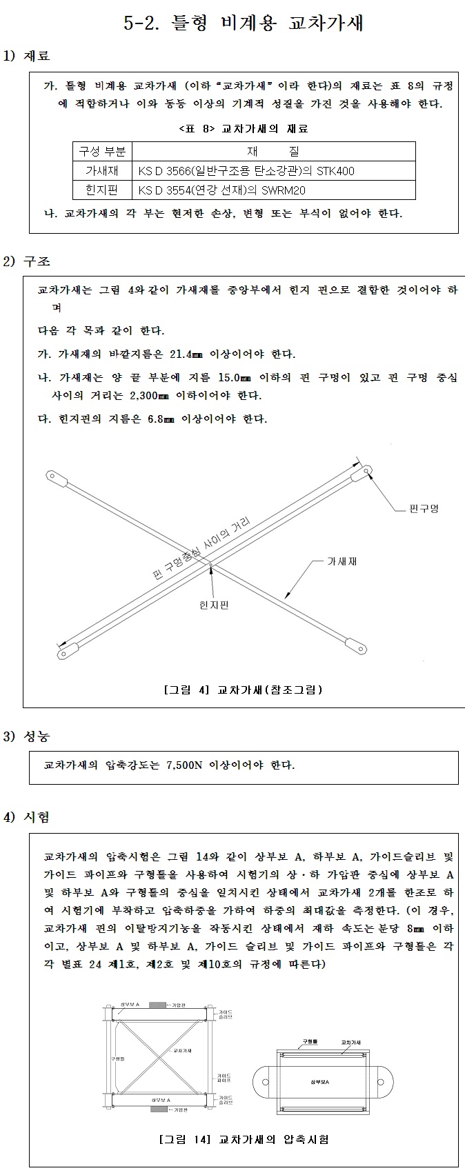 틀형비계용교차가새(틀비계용교차가새) 재료/구조/성능/시험기준