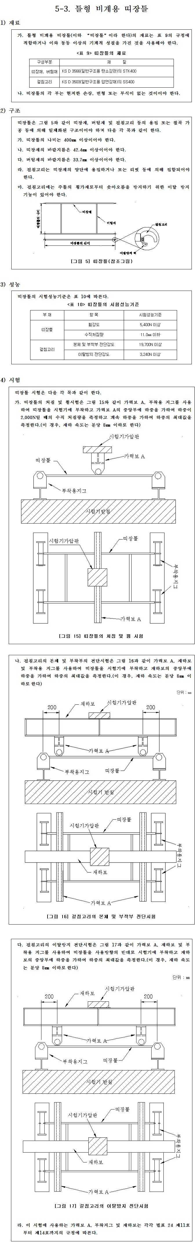 틀형비계용띠장틀(틀비계용띠장틀) 재료/구조/성능/시험기준