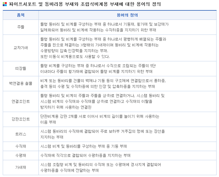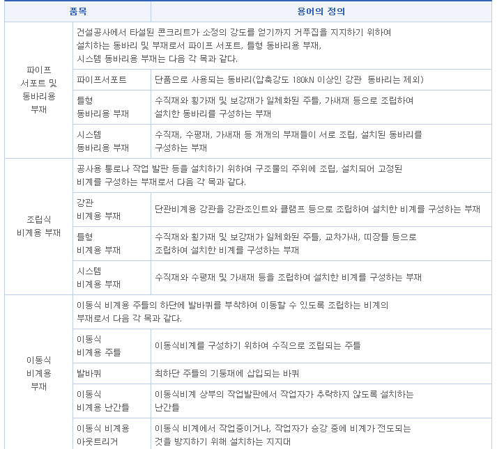 가설기자재 의무안전인증 대상품목에 대한 용어정의