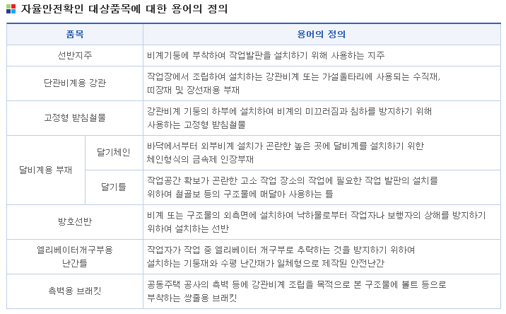 가설기자재 자율안전확인 대상품목에 대한 용어정의