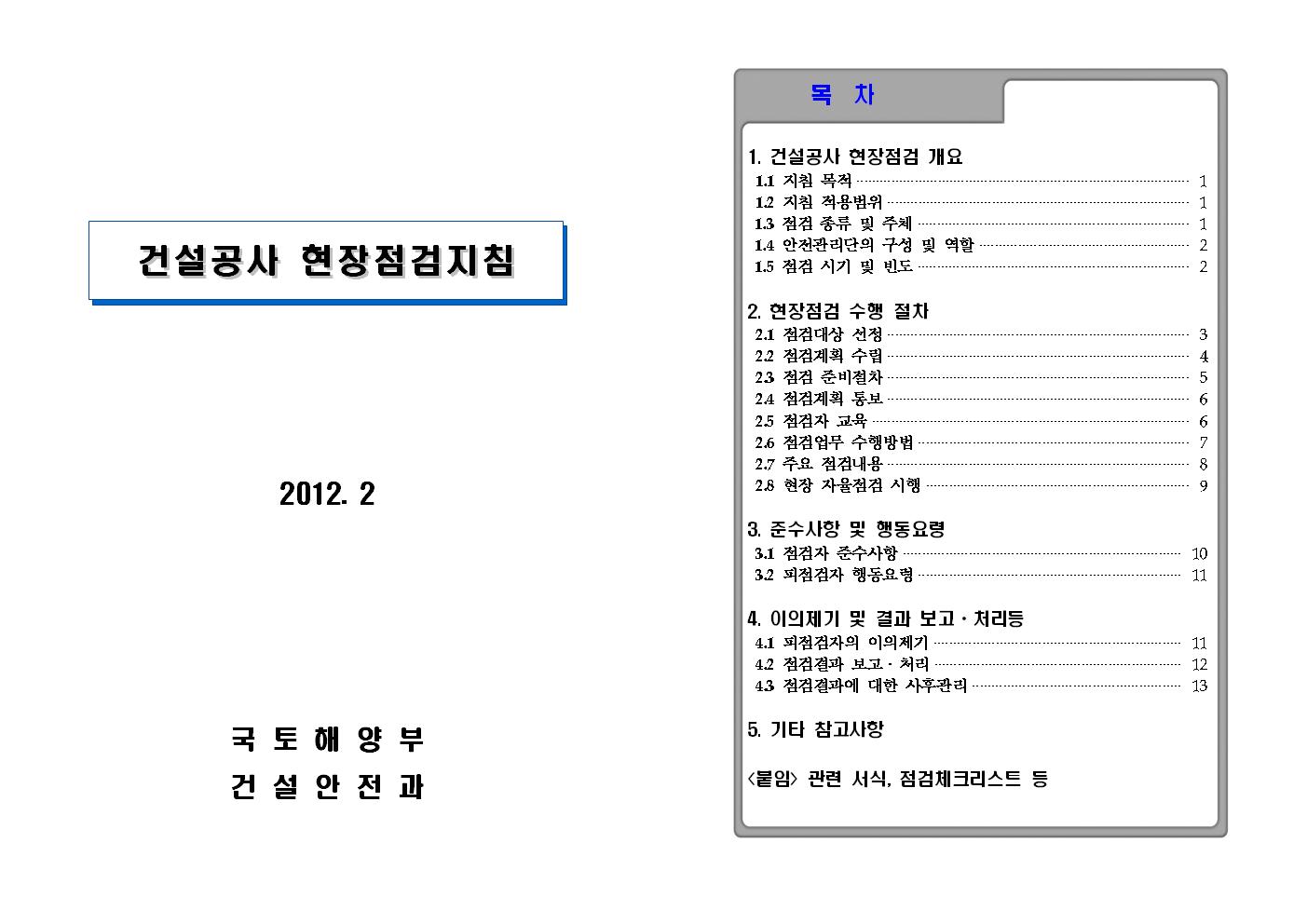 건설공사 현장점검지침 / 국토해양부 건설안전과 / 2012. 2월