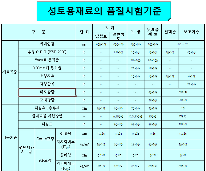 보조기층선택층 입도기준표