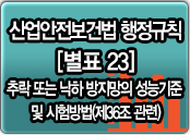 [산업안전보건법행정규칙]방호장치 의무안전인증 고시[별표23]추락 또는 낙하 방지망의 성능기준 및 시험방법(제36조 관련)