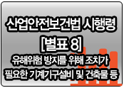 산업안전보건법시행령 [별표8]유해위험 방지를 위하여 필요한 조치를 하여야 할 기계기구설비 및 건축물 등(제27조제2항 관련)